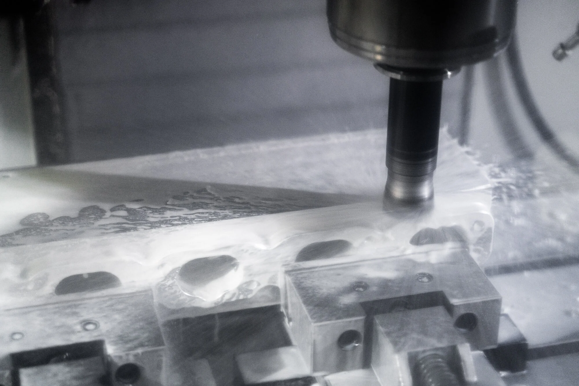 CNC milling machine working on an aluminium billet.